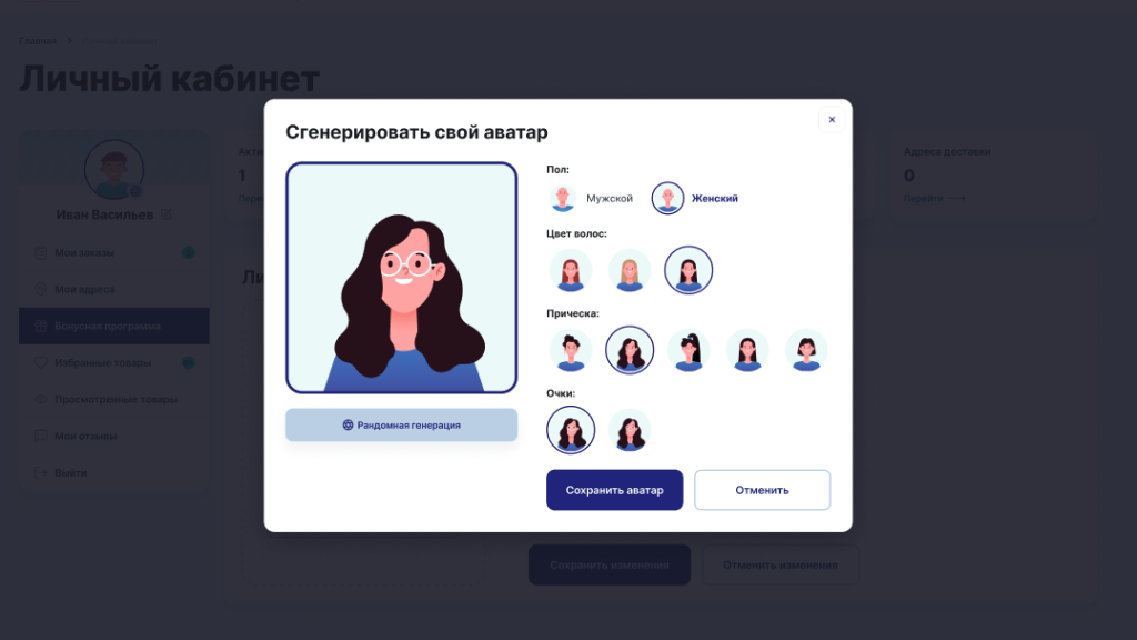 - личный кабинет с историей заказов;