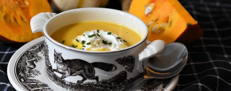 6. Готовый крем-суп можно украсить зеленью или тыквенными семечками.