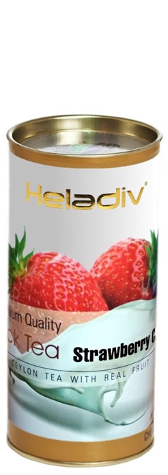чай черный цейлонский с натуральным ароматизатором бергамотаЧерный листовой чай Heladiv Black Tea Strawberry Сream (Клубника со сливками) – это высокое качество лучших отборных листьев чая с острова Цейлон с необычным вкусом спелой клубники и сливок. При заваривании образует насыщенный цвет и яркий аромат. Такой чай подарит утреннюю бодрость и зарядит позитивным настроением на весь день благодаря своему сливочно-ягодному вкусу. Упаковка в виде тубы надежно сохраняет все свойства чая.